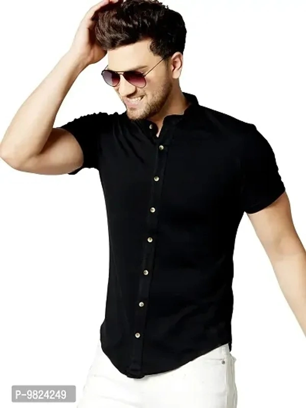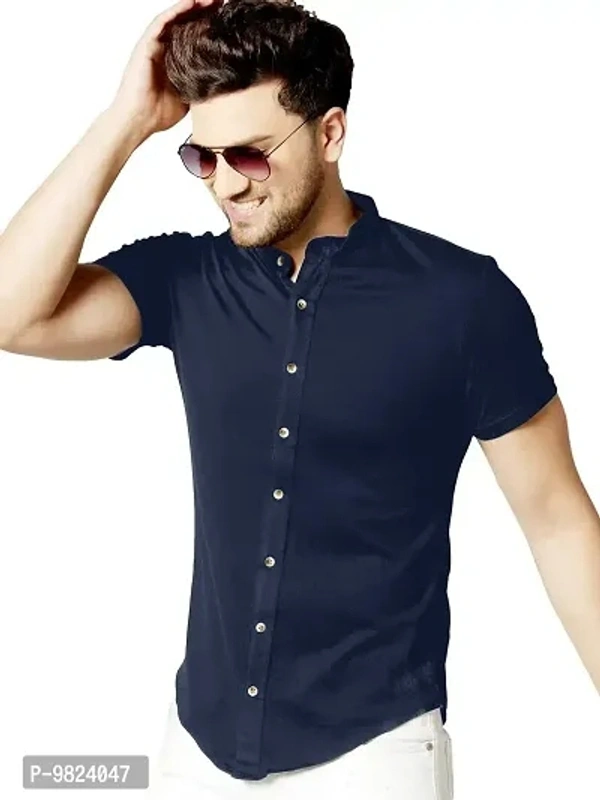 GESPO Men's Solid Multicolor Mandarin Collar Half Sleeve Casual Shirt